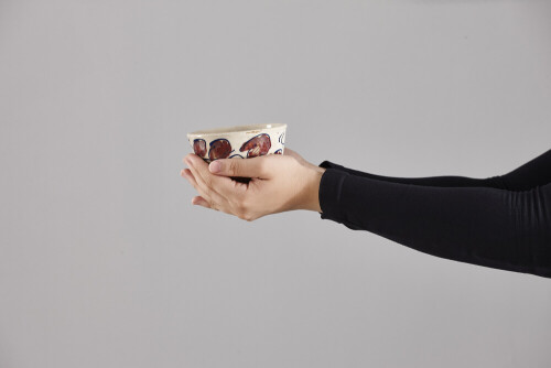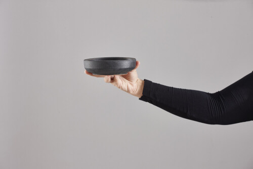 A woman in black abaya holding different pottery essentials in different positions