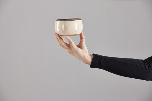 A woman in black abaya holding different pottery essentials in different positions