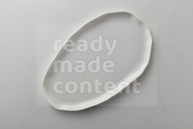 Top-view shot of an irregular white plate on white background
