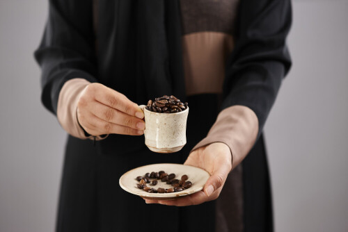A Saudi man Holding a Laptop on Blue Background wearing Saudi Thob and Shomag