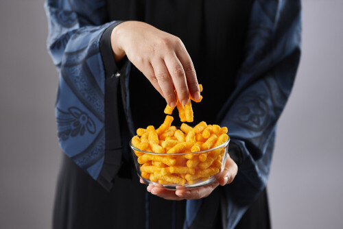 Hands holding assorted food