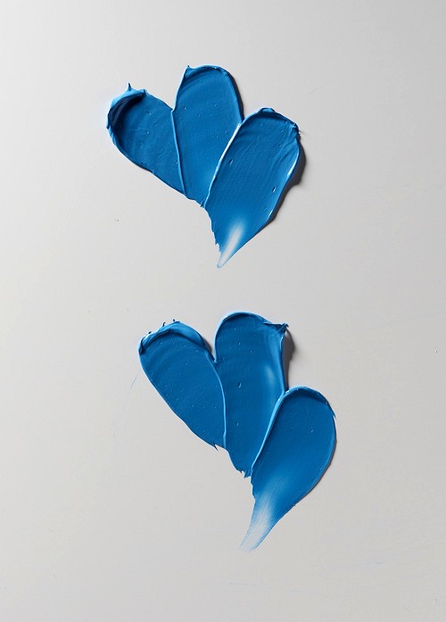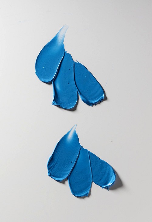 Blue painting knife strokes on white background