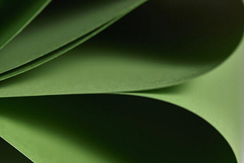 An abstract art showing green paper sheets arranged in an overlapping curves