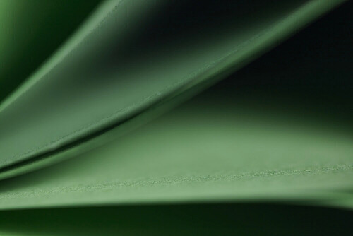 An abstract art showing green paper sheets arranged in an overlapping curves