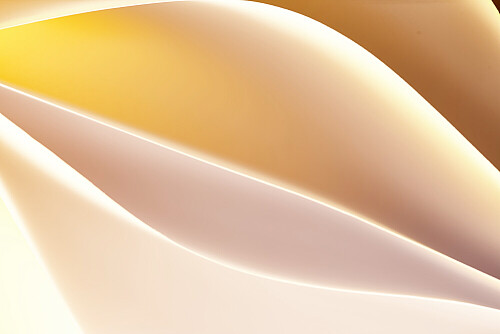 This image showcases an abstract paper art composition with paper curves in gold gradients created by colored light