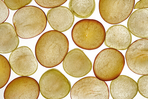 Plum slices on illuminated white background