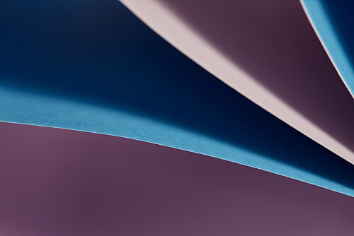 An abstract art showing purple and blue paper sheets arranged in an overlapping curves