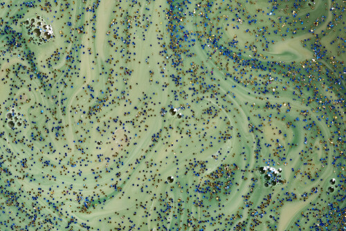 Swirling glitter in blue and green
