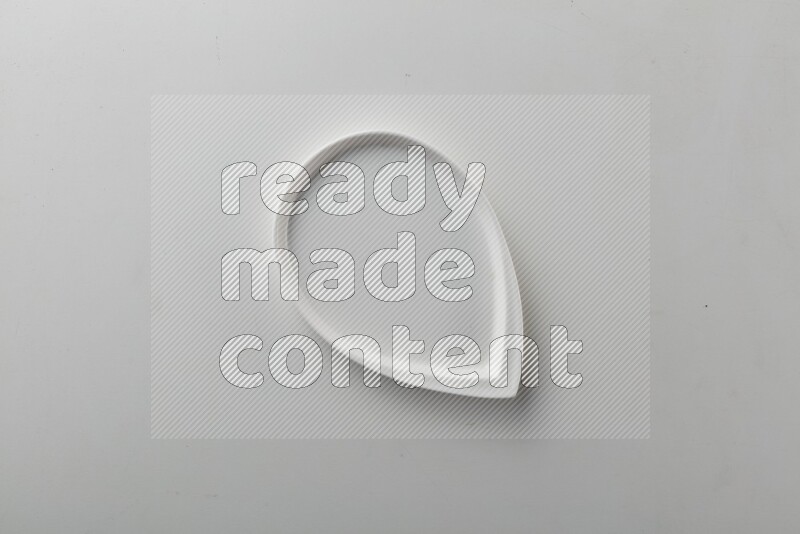 Top-view shot of an irregular white plate on white background