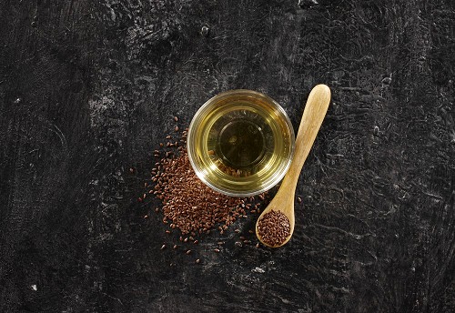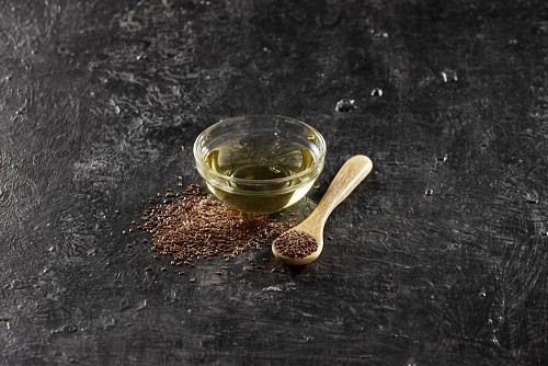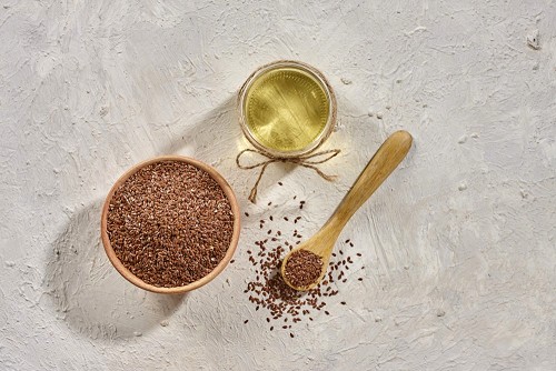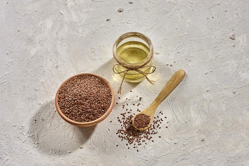 Flaxseeds in a glass jar