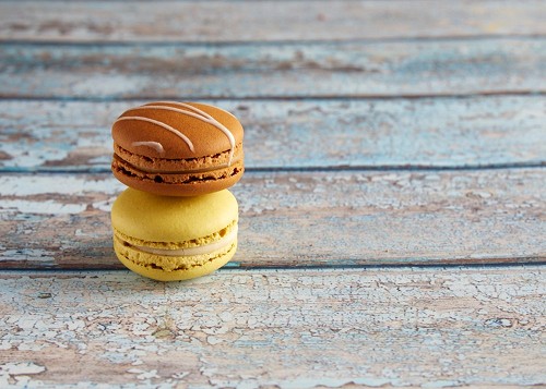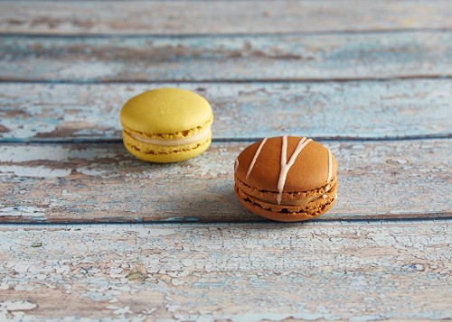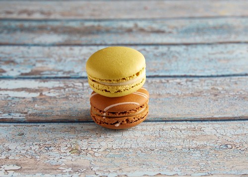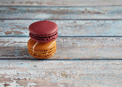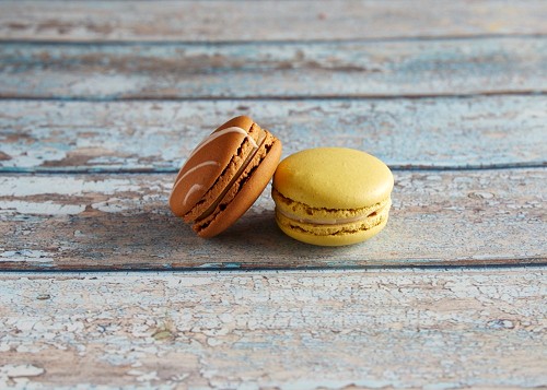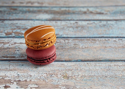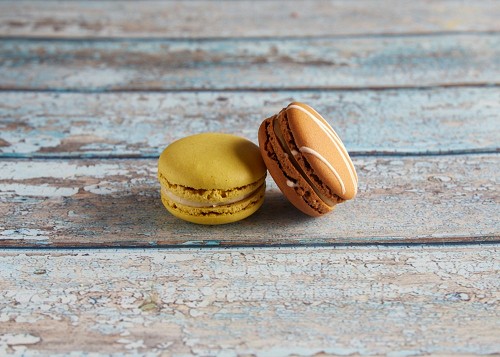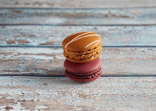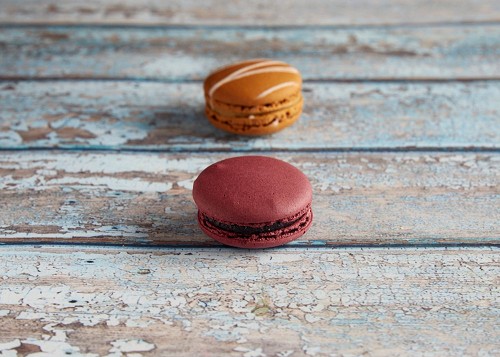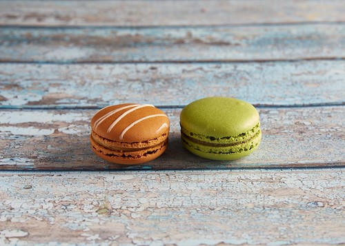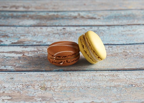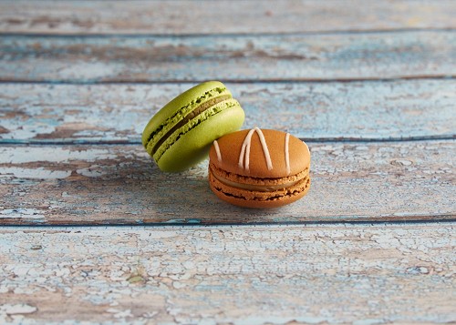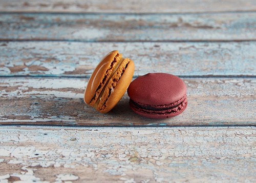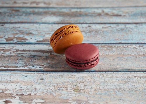 assorted Brown Irish Cream, and Pink Raspberry macarons