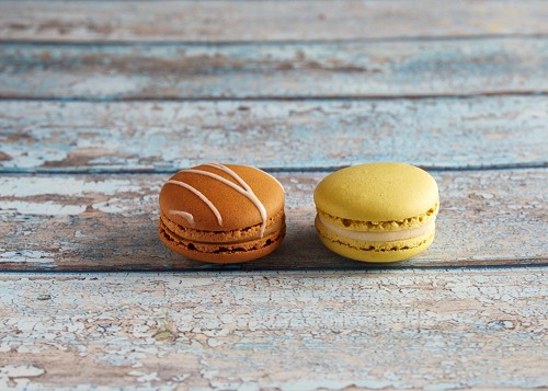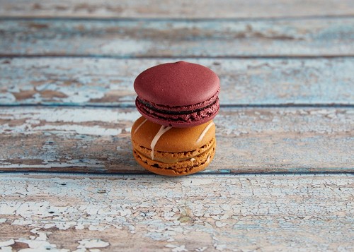assorted Brown Irish Cream, and Purple Blueberry macarons